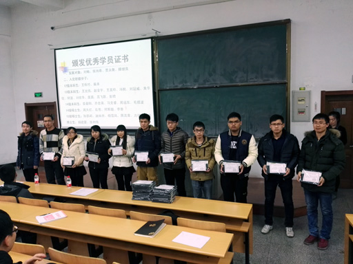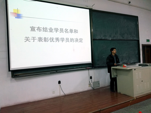 随后,院党委副书记、分党校副校长张弛老师讲话。他首先代表院党委向辛勤授课的各位老师及参与管委会工作的学员同学们表示衷心的感谢,同时向顺利结业和荣获培训班“优秀学员”称号的同学表示祝贺,并向学员同学们提出了几点要求:一是继续深入学习党的理论知识、方针、政策,进一步端正入党动机;二是扎扎实实学好专业知识,发挥先锋模范作用;三是继续以党员标准严格要求自己,以实际行动争取入党。同时希望同学们以此为新起点,坚定信念,发奋学习,积极工作,发扬老九系的光荣传统,早日成为党旗下的一名中国共产党党员,成为社会的栋梁之材。