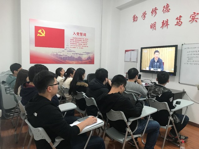 随后,同学们一起观看了“十九大”提要新闻和长达一个小时的题为“辉煌中国——圆梦工程”的纪录片,深入了解五年来我国基础设施建设取得的可喜进展,大家并就此展开热烈的讨论。王志权同学谈到,在本次会议观看纪录片之后,自己的民族自豪感进一步升华,同时,作为一名即将攻博的同学,更加体会到了自己的责任,愿意为我国工业的发展贡献自己的一份微薄力量。李莎同学结合自己的经历,对我国高铁、动车方面的快速发展发表了自己的看法。