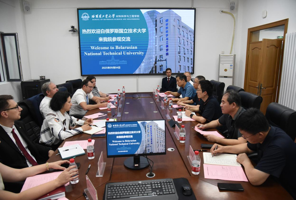 刘紫航副院长首先代表学院欢迎白俄罗斯国立技术大学来宾,介绍学院发展历程与核心成就。随后,双方学科负责人围绕材料学、焊接科学与技术、空间材料与器件等相似领域展开专项交流,分享各自团队的研究重点、科研成果及人才培养模式,并就学科前沿、联合申报科研项目、共享学术资源等议题深入研讨。